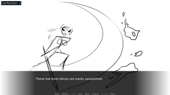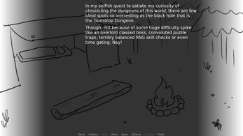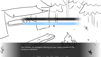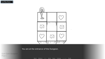 It's in the format of a visual novel mixed with something like a board game with dice rolls used to move your character token on the dungeon board.